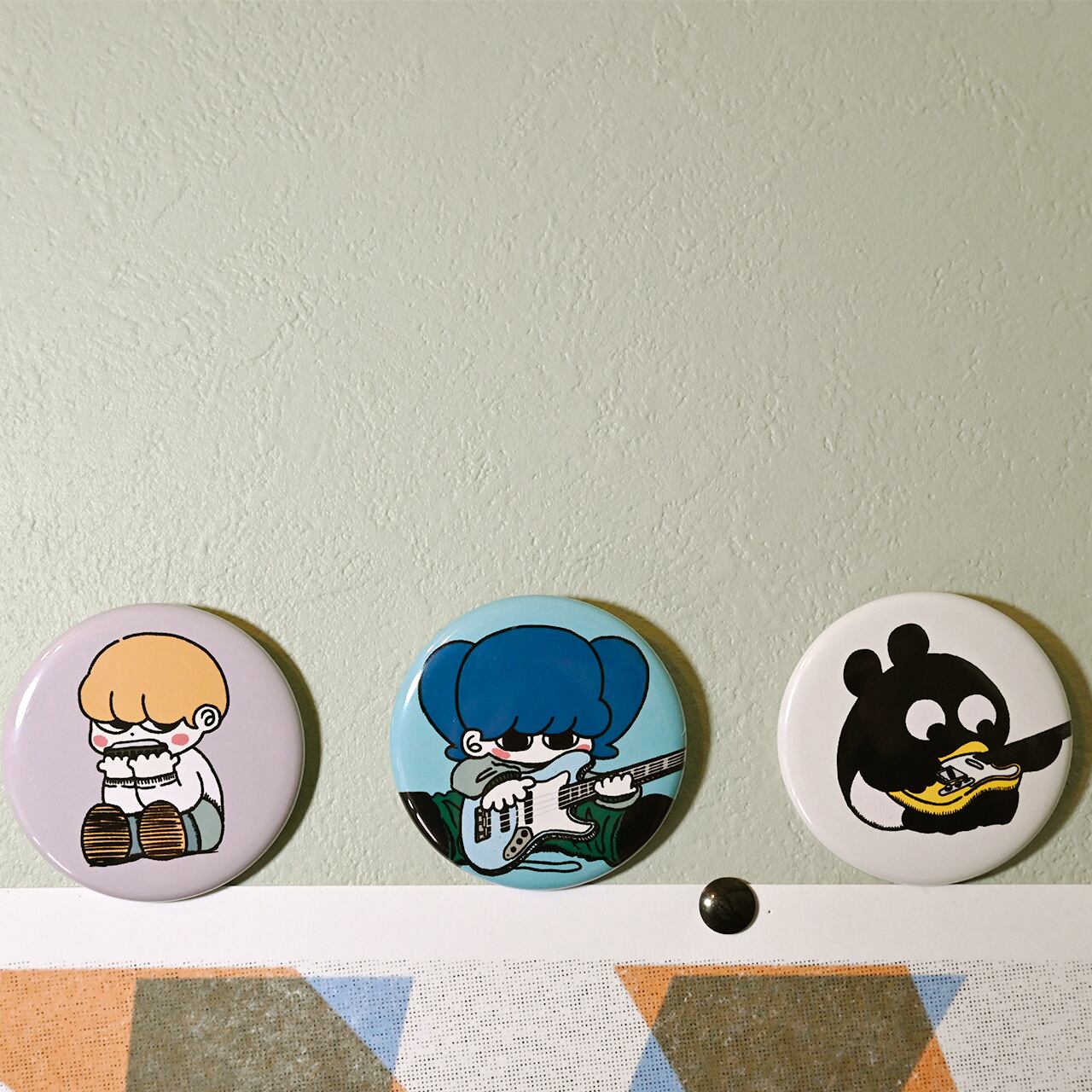 キャラクターをあしらった缶バッジ。